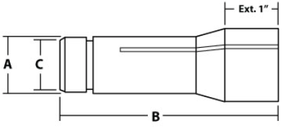 10091410000000. Hardinge 5C 1" Extended Nose Emergency Collet with 1/4" Pilot Hole and 3 Slots.