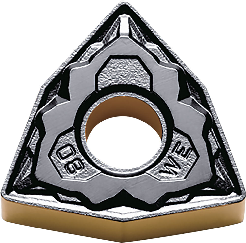 Kyocera WNMG 433WE CA125P Grade CVD Carbide, 80 Degree Trigon, Negative Rake Angle, Neutral Turning Insert for Light Interruption and Finishing-Medium in (P) Carbon/Alloy Steel