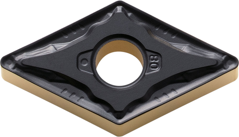 Kyocera DNMG 433PMG CA125P Grade CVD Carbide, 55 Degree Diamond, Negative Rake Angle, Neutral Turning Insert for Light Interruption and Medium-Roughing in (P) Carbon/Alloy Steel